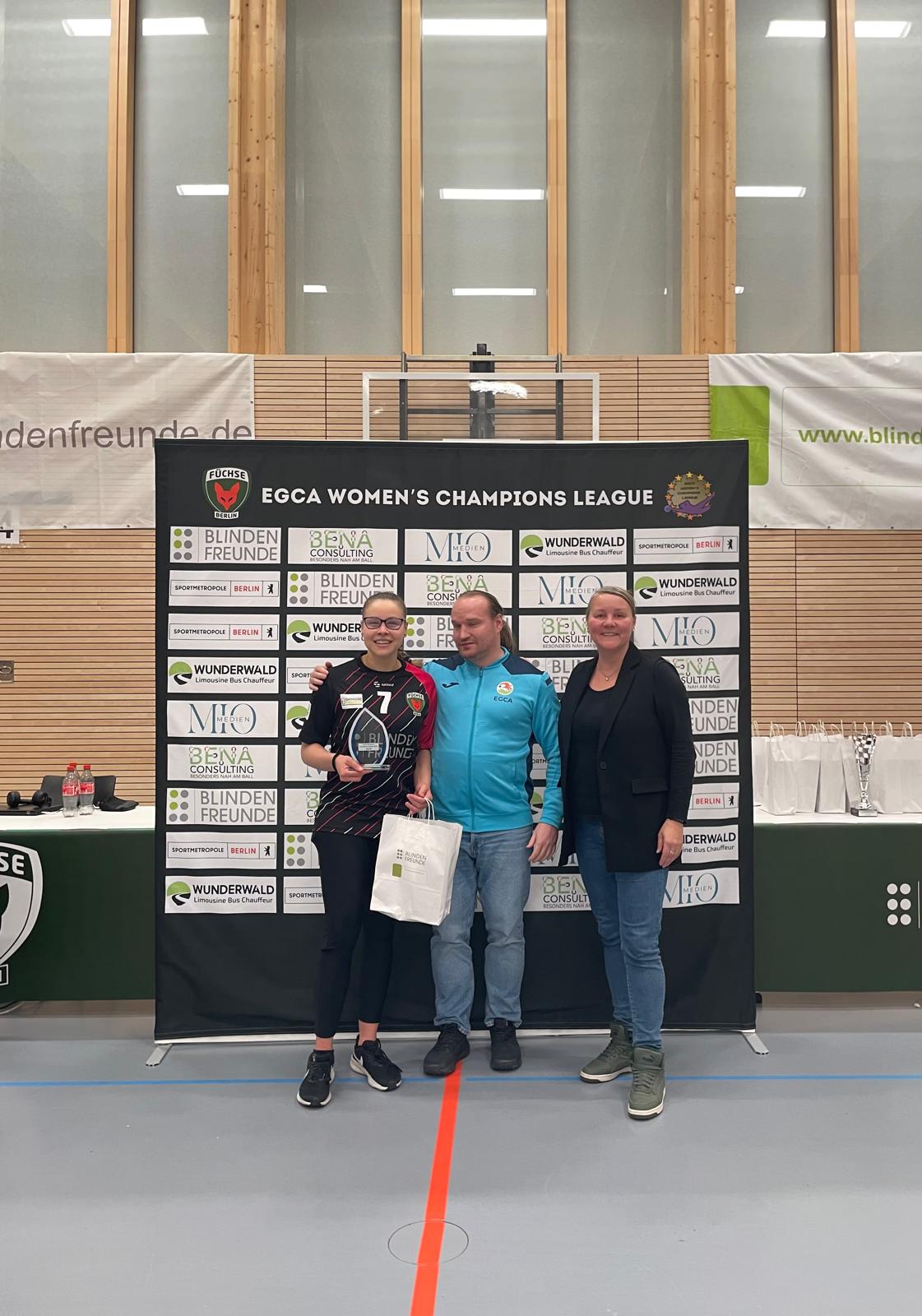 The final started perfectly for hosts Füchse Berlin with two brilliant goals from Amanda Dennis. Their rock-solid defense held strong, resulting in a 2–0 halftime lead. Kahramanmaraş struck early in the second half through Fatma Gül Güler, and the Turkish side increased their attacking risk. The decisive goal came from a penalty throw, Dennis again scoring past Reyhan Yilmaz. Kali Holder finished off a stellar performance by securing the 4–1 final result. Amanda Dennis — Berlin’s defensive cornerstone and offensive architect — was deservedly named the tournament’s MVP, while wings Kali Holder and Qendresa Maliqi were also outstanding, particularly in defense.